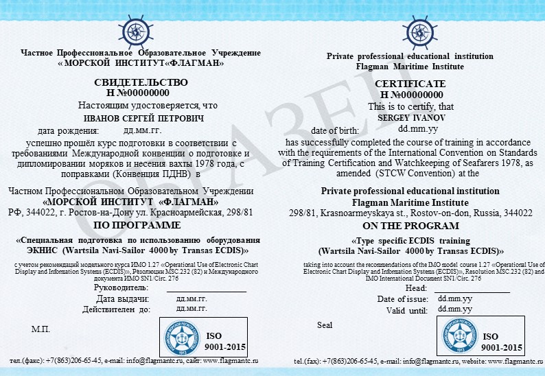 Специальная подготовка по использованию оборудования ЭКНИС (Wartsila Navi-Sailor 4000 by Transas ECDIS)
