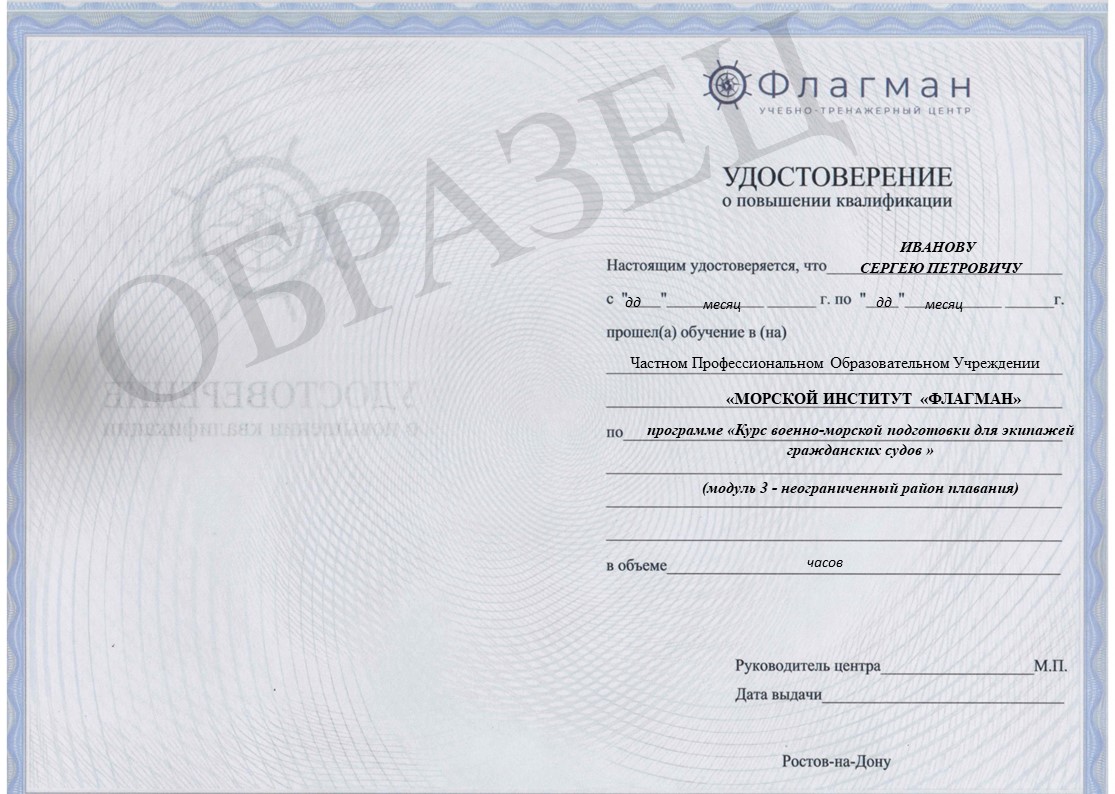 Курс военно-морской подготовки для экипажей гражданских судов (модуль 3 - неограниченный район плавания)