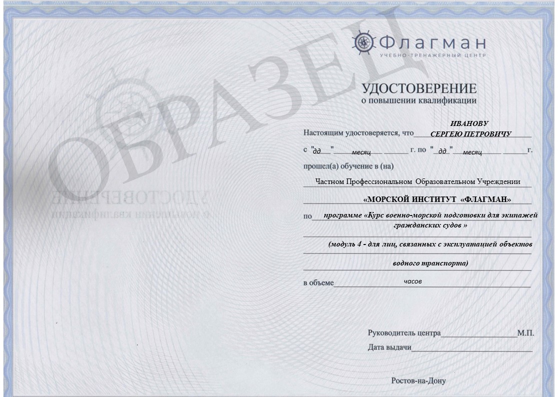 Курс военно-морской подготовки для экипажей гражданских судов (модуль 4 – для лиц, связанных с эксплуатацией объектов водного транспорта)