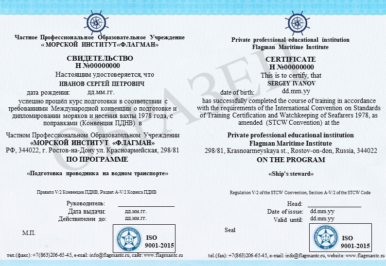 Подготовка проводника на водном транспорте/ Стюард / Ship's steward
